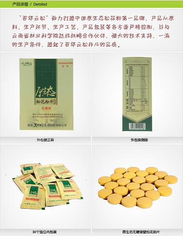 “百年云松”原生態(tài)破壁松花粉、無(wú)糖松花粉片系列產(chǎn)品,選取人工采摘的云南大理巍山國(guó)家級(jí)森林公園地區(qū)、品質(zhì)純凈、無(wú)任何污染的原生態(tài)深山馬尾松花粉,經(jīng)過(guò)活性檢測(cè)、常溫除濕、三次精濾、低溫破壁、保質(zhì)滅菌后,以獨(dú)有的無(wú)糖配方在GMP車(chē)間精制而成。